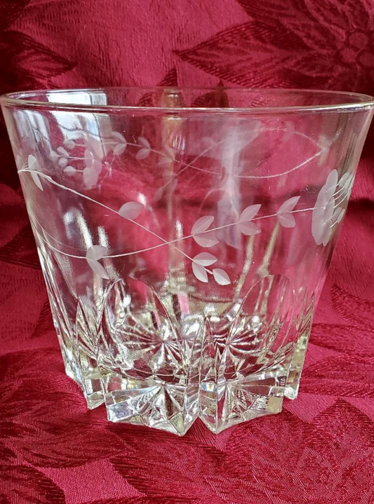 Princess House 11 oz Flat Tumbler, Etched Lead Crystal, Heritage Pattern