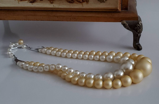 Vintage 1950's era Double Strand Faux Pearl Choker, white and creamy beige, Japan