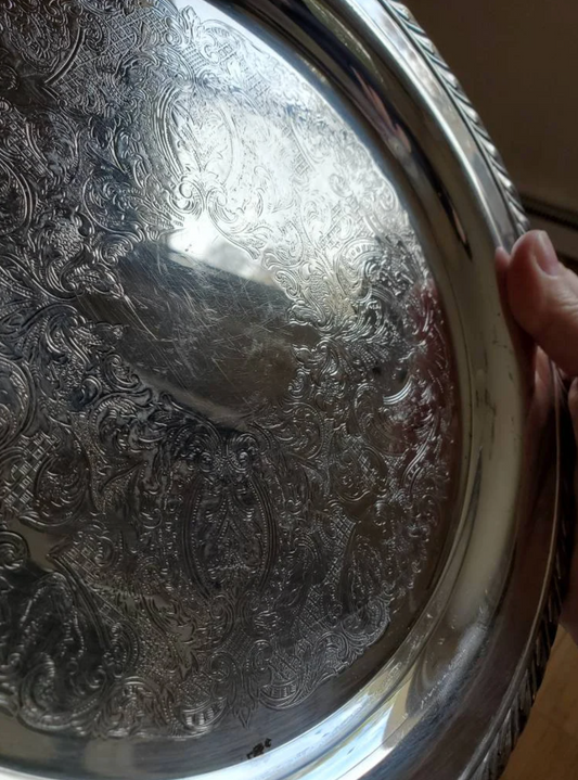 10" Oneida Maybrook Silverplate Serving Tray with Engraved Filigree