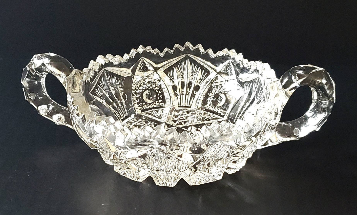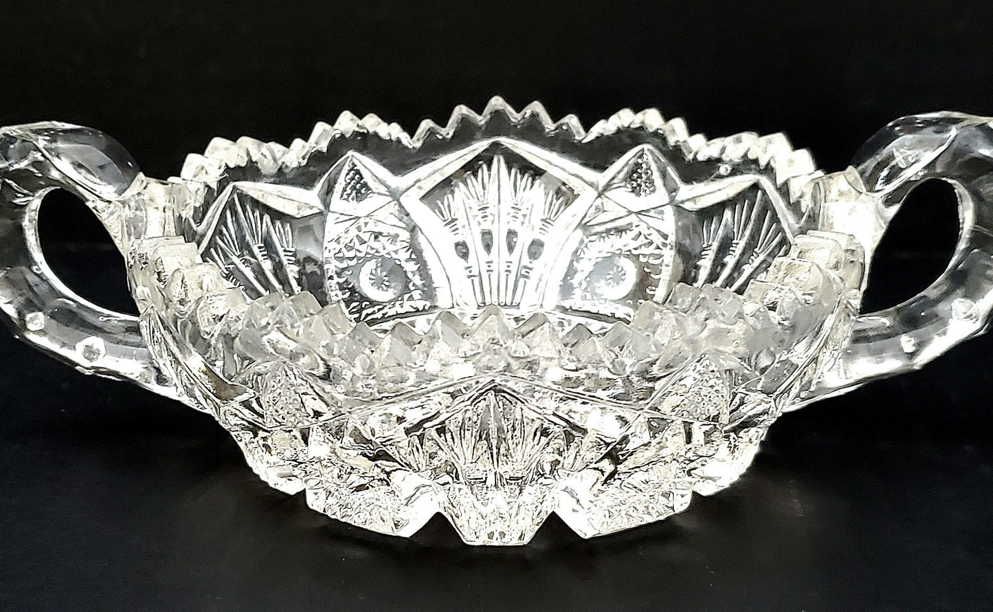 American Brilliant Period Cut Glass Two-Handled Nappy, Nut Dish, Candy Dish - Stunning - Excellent Condition!