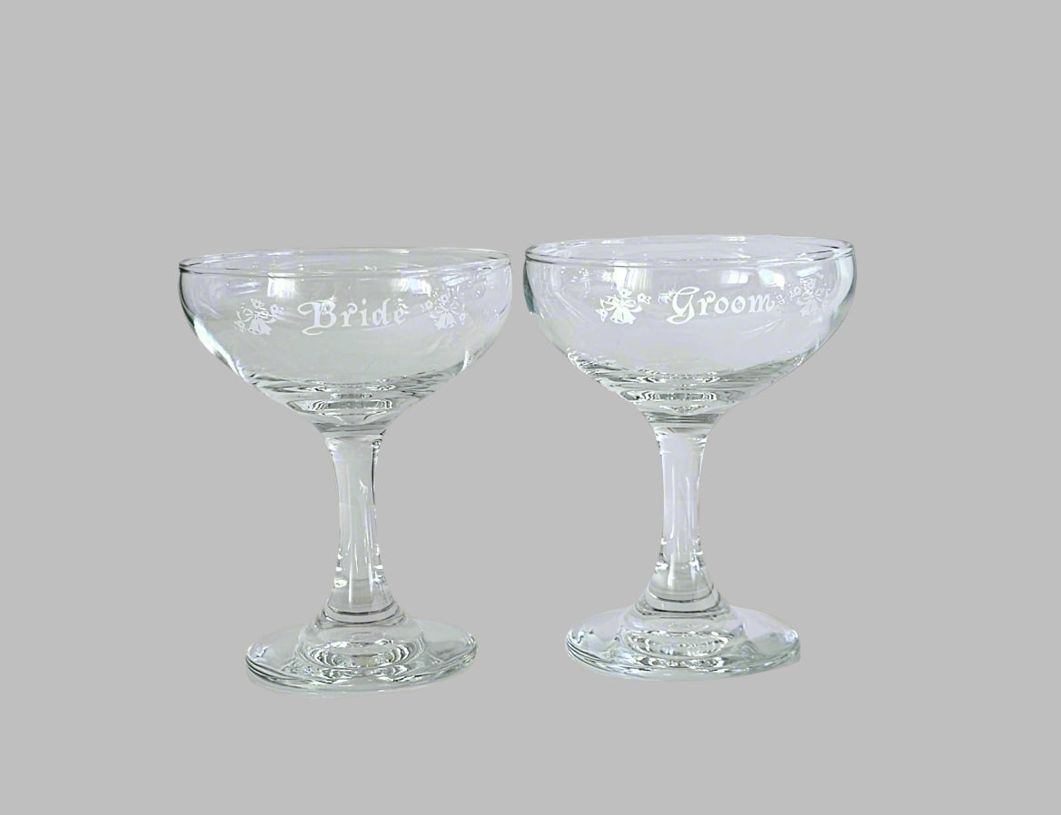 Bride and Groom labeled wine glasses for your wedding ceremony.