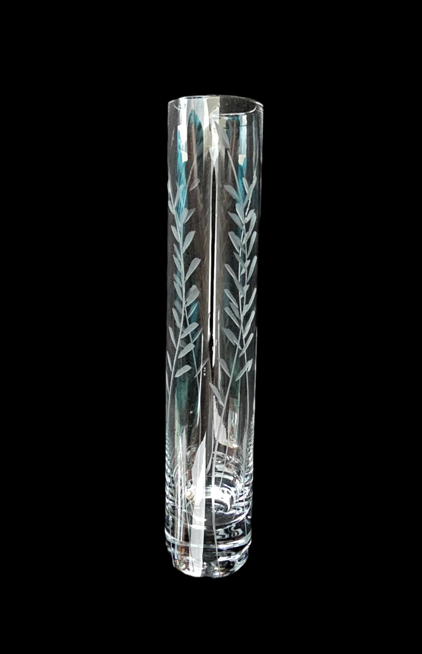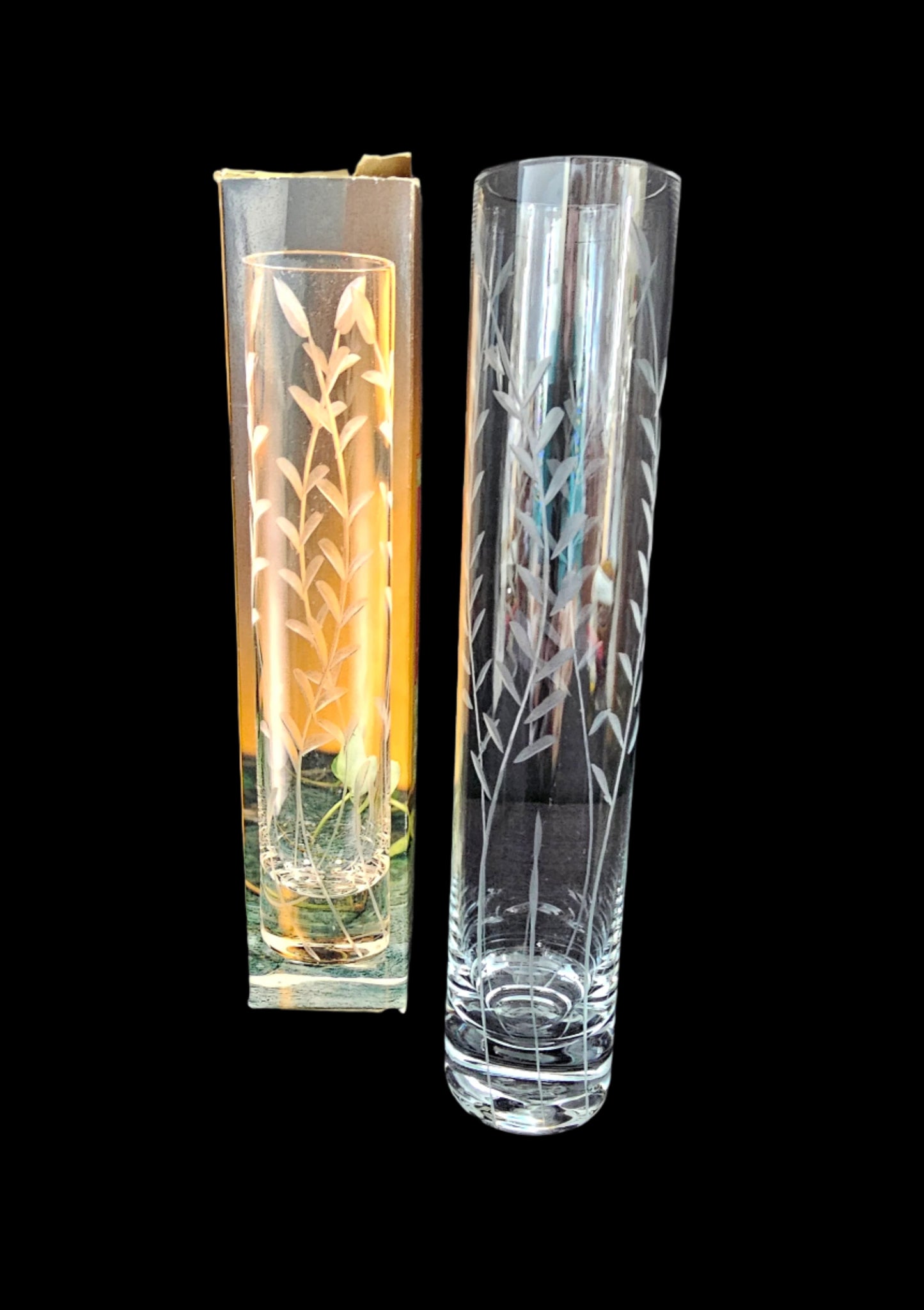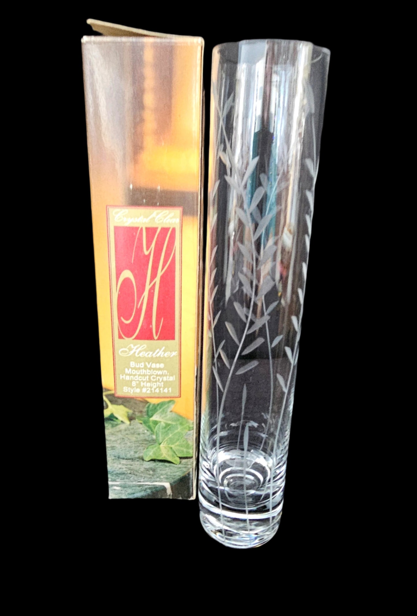 8" Blown Glass Crystal Bud Vase, "Heather" Pattern, New in Box