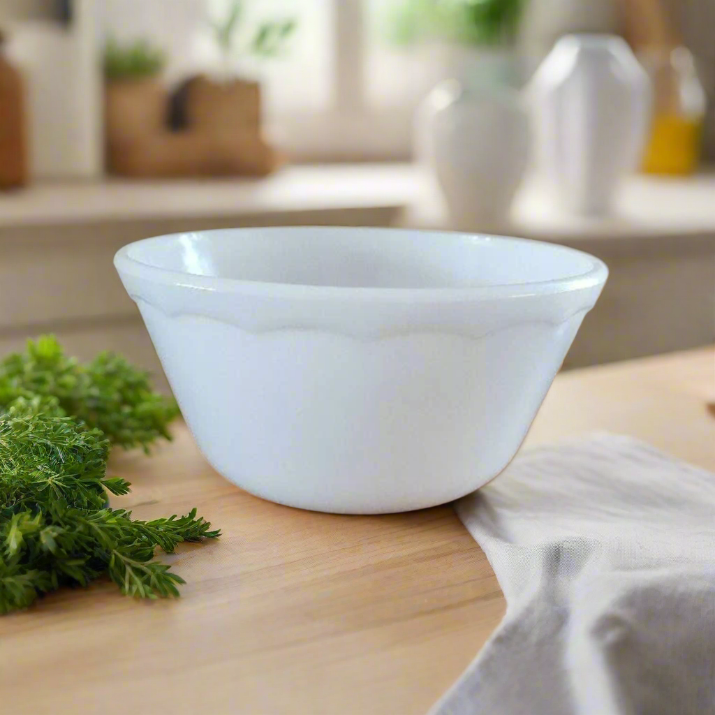 7" Hazel Atlas Milk Glass Mixing Bowl with Scalloped Edge