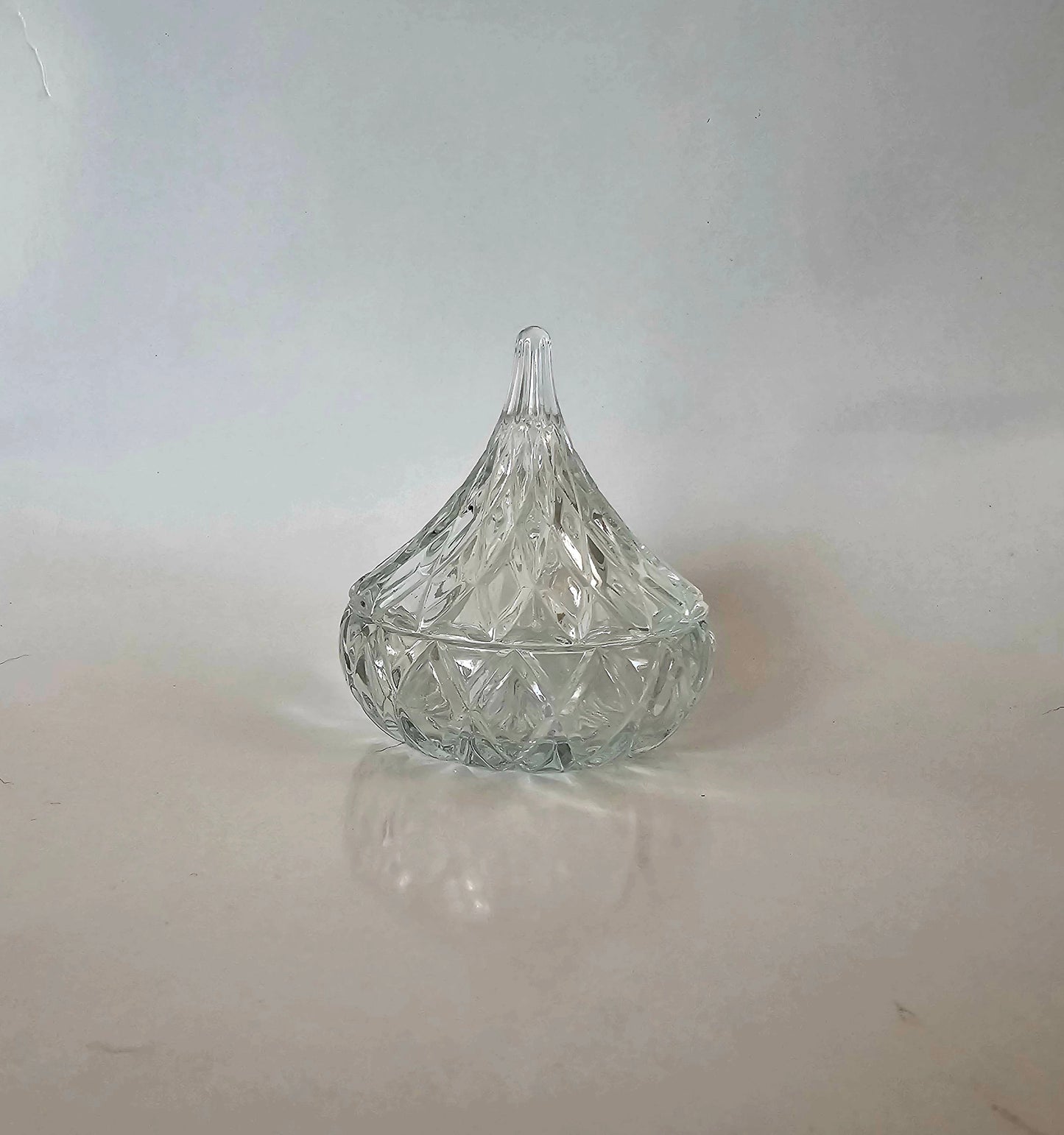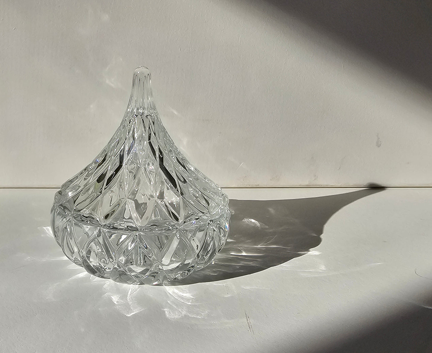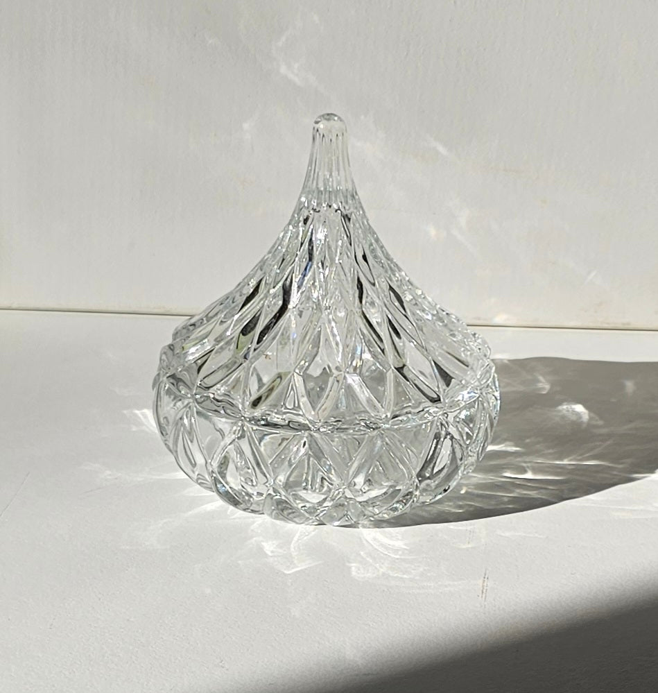 This little sparkling gem is just gorgeous. Shaped to look like a Hershey's Kiss chocolate, this crystal trinket box would make an excellent ring holder. Place it somewhere sunny and enjoy the sparkle!