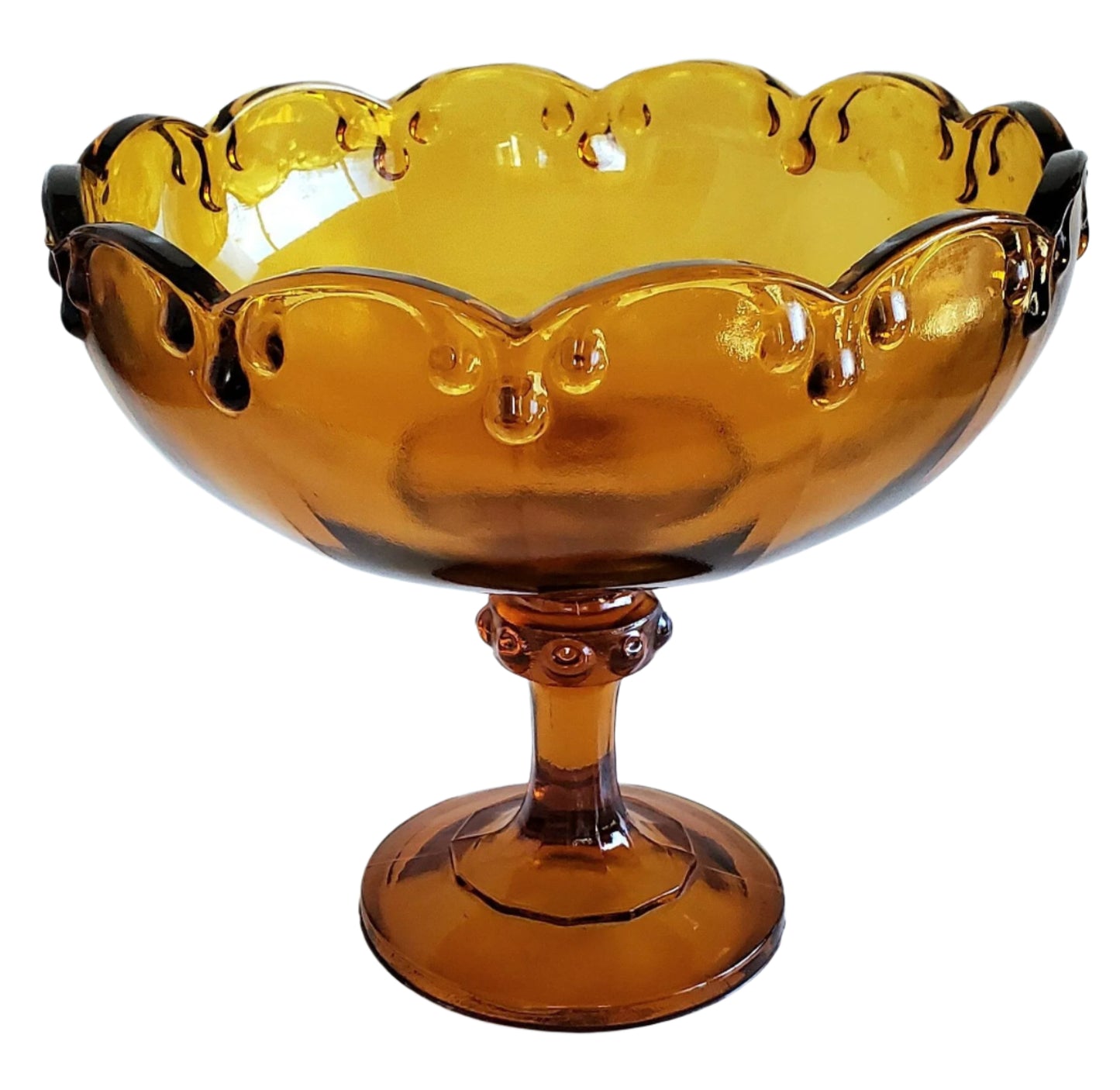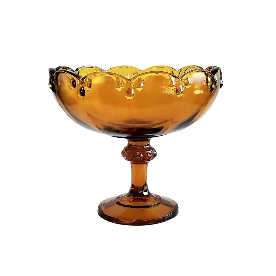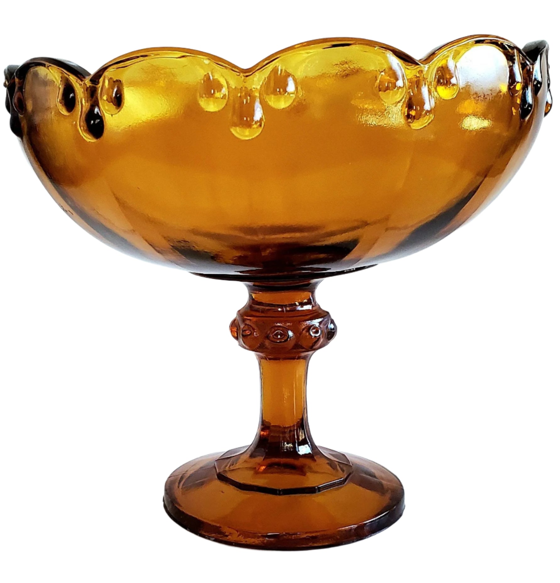 Indiana Glass Tiara Garland Teardrop Bowl, Amber, Compote, Excellent Vintage Condition