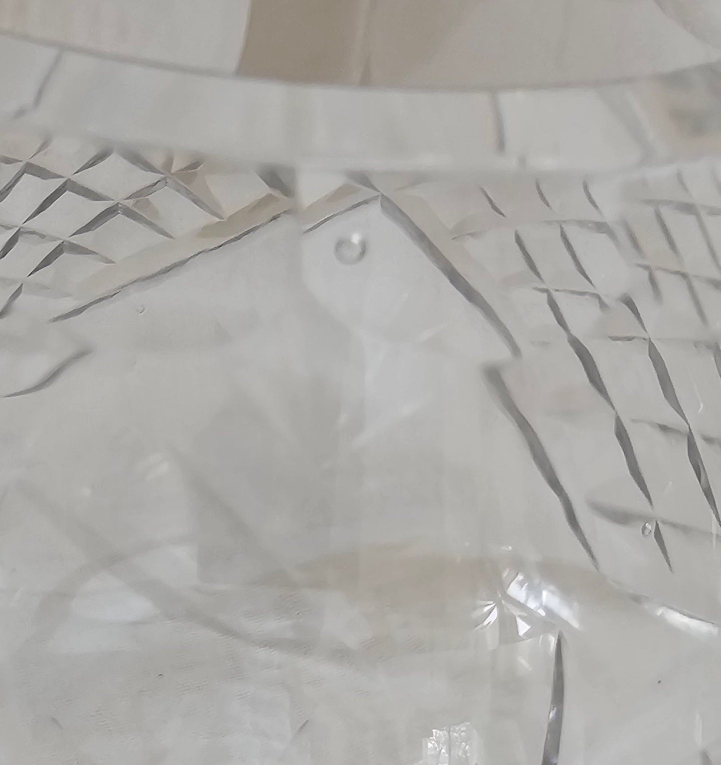 Care: Crystal should always be washed by hand in soapy water, in an empty sink. Even heavy crystal pieces like this can chip or crack if they hit other pieces in the sink. Dry immediately after washing to avoid water spots. This piece can also be spot cleaned with window cleaner and a lint-free towel when needed. Handle with care.