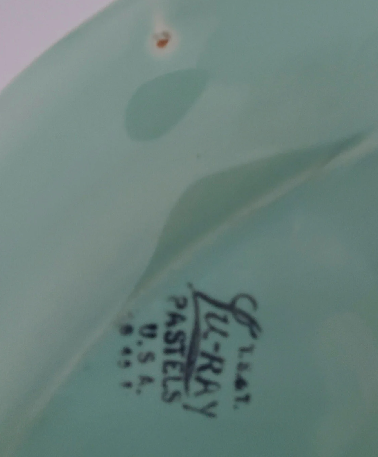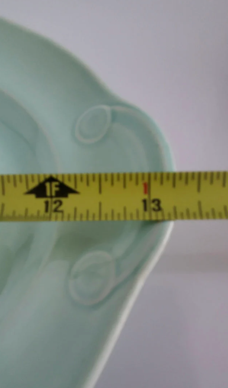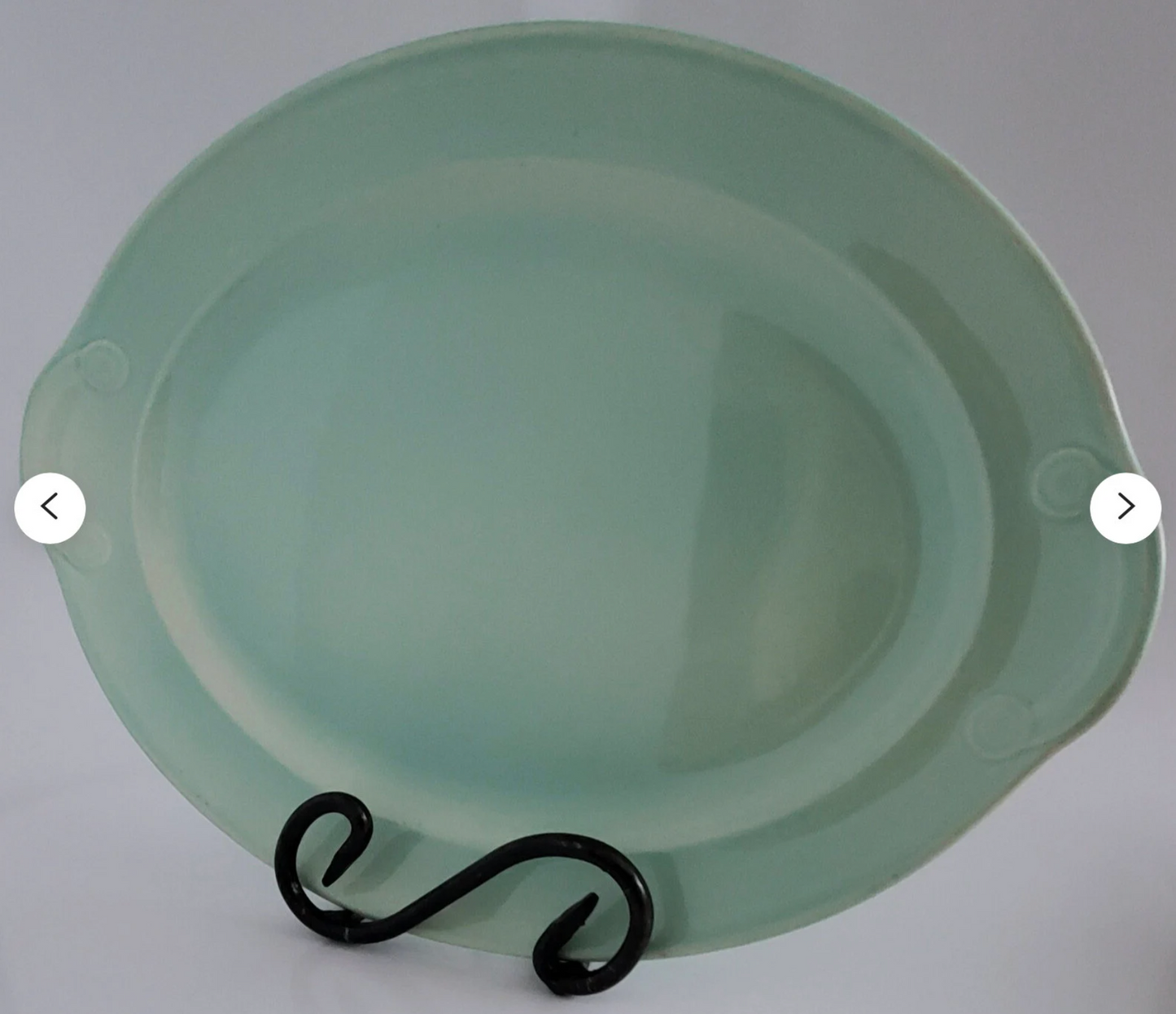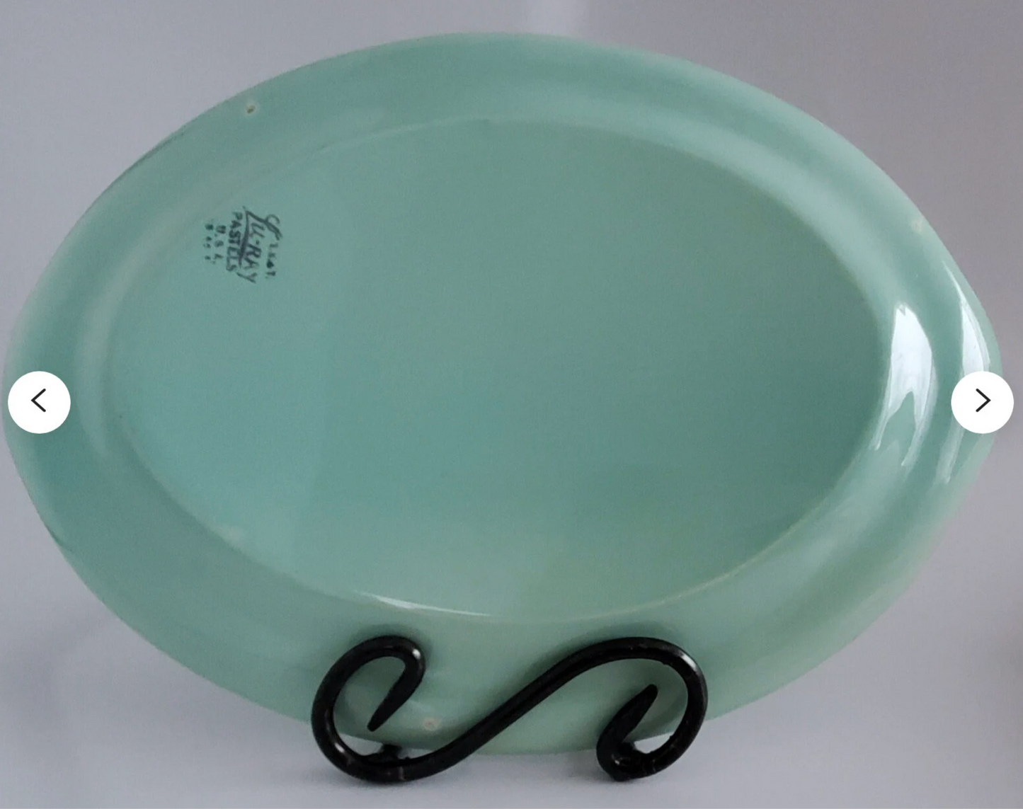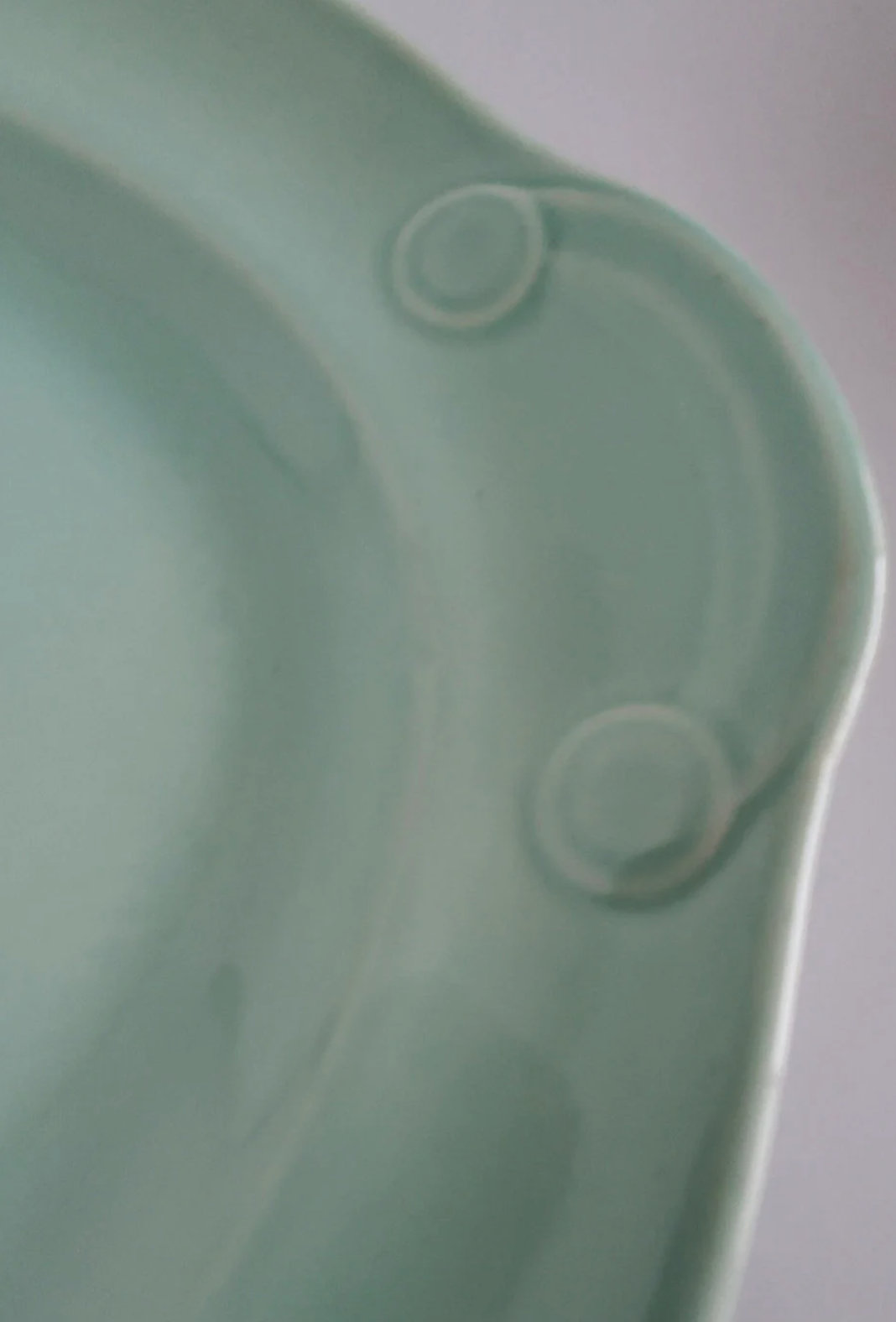 Lu-Ray pastels platter, by Taylor, Smith & Taylor mid-century, surf green. This platter measures 13 1/4" wide and 9 3/4" across.