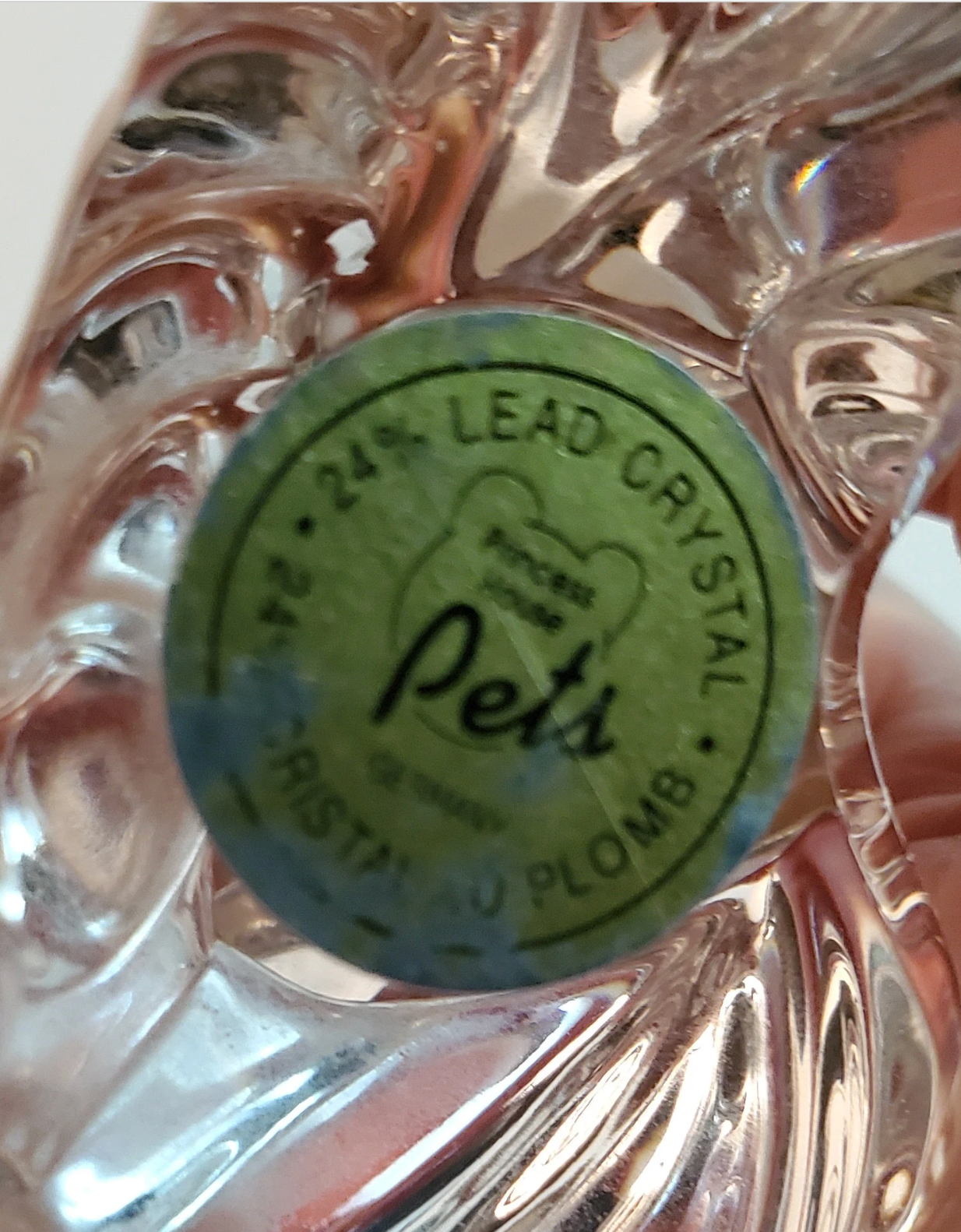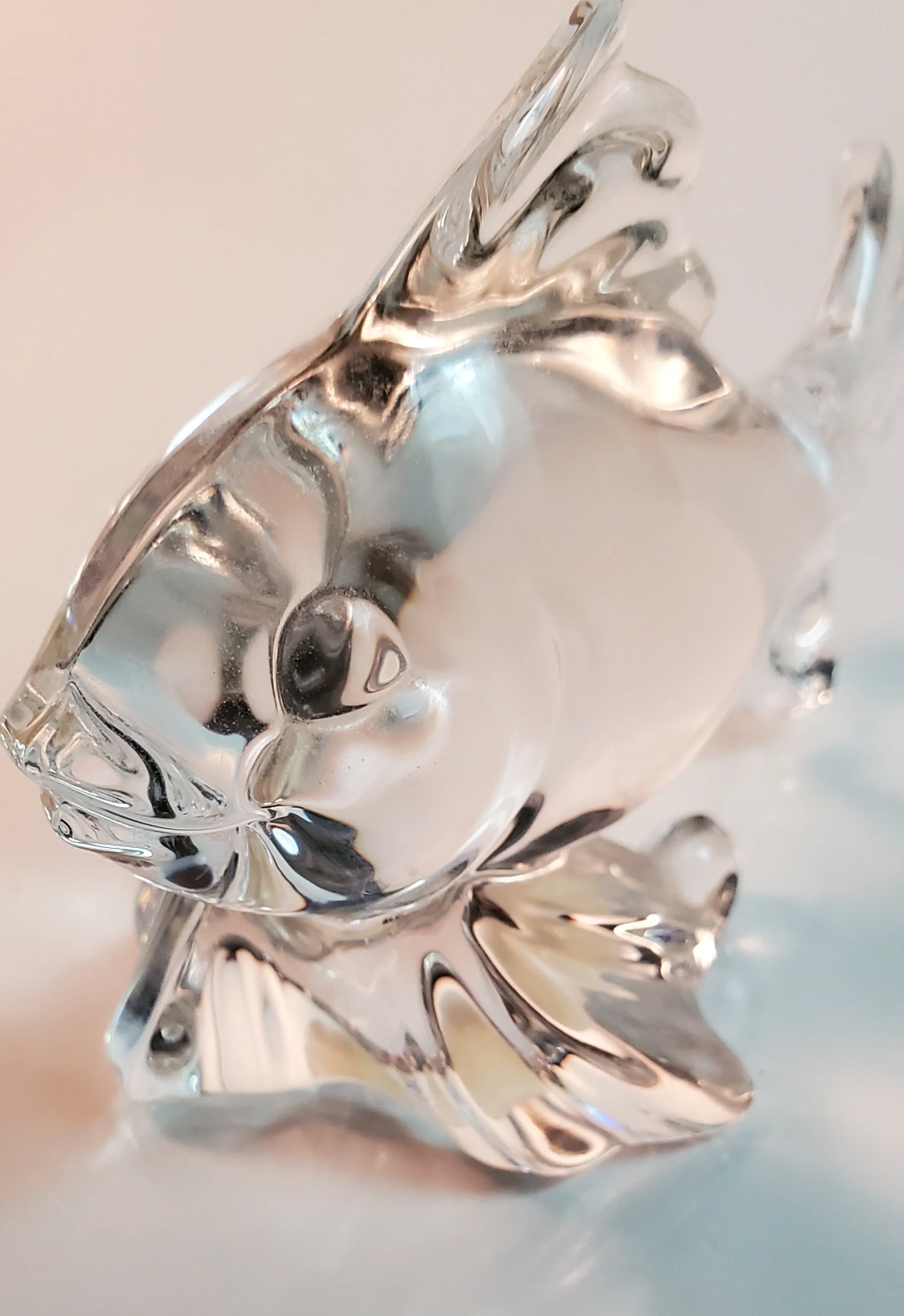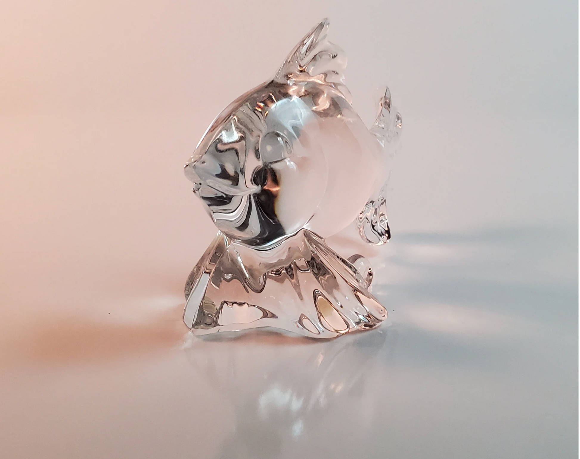 Made out of 24% lead crystal, this little fish rides a little swirl of frozen-in-time water. He was made by Princess House for their pets collection. Get this one for yourself, or gift to an animal lover, someone who loves to fish, collect crystal, etc.