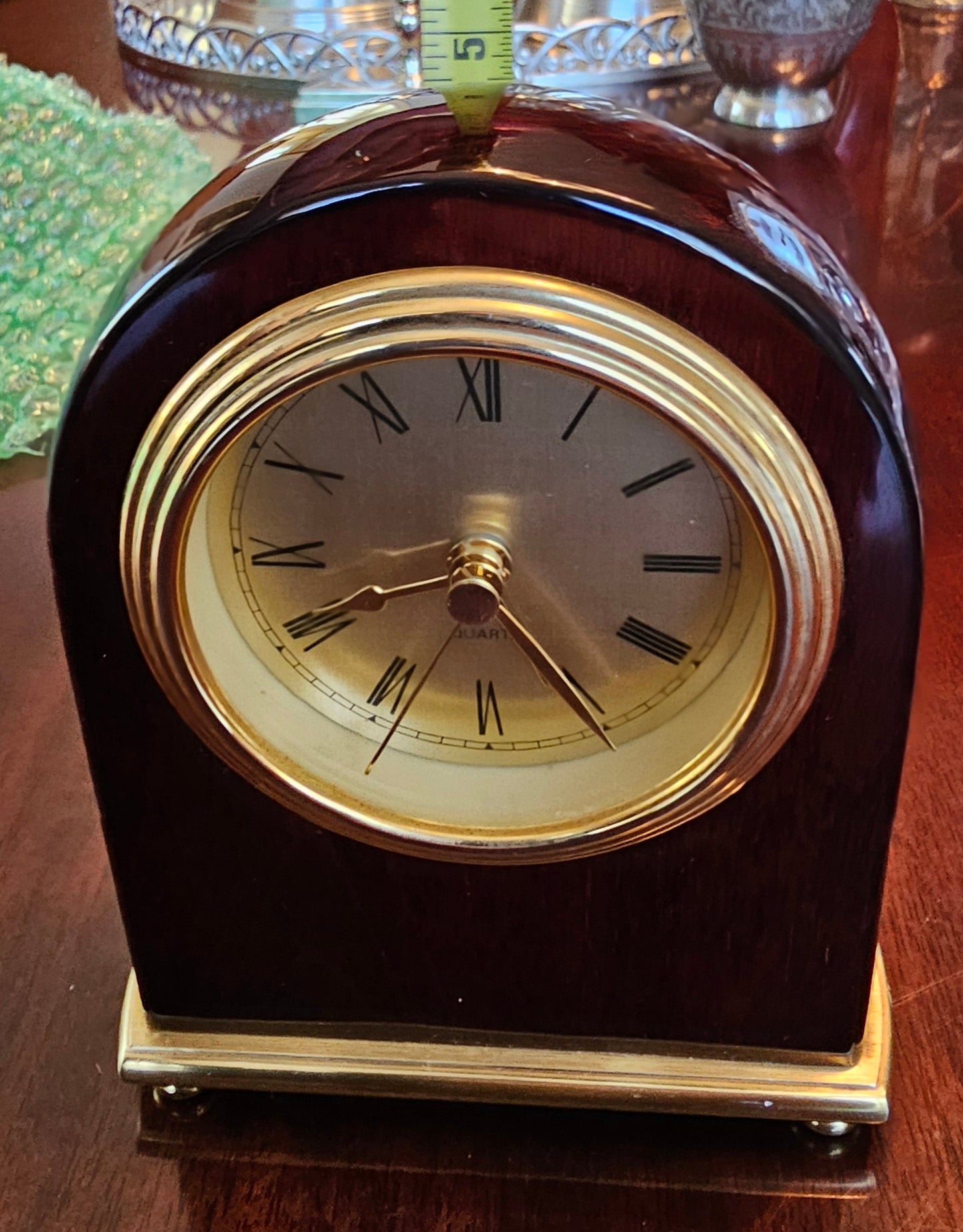 Howard Miller Rosewood/Cherry and Brass Analog Alarm Clock