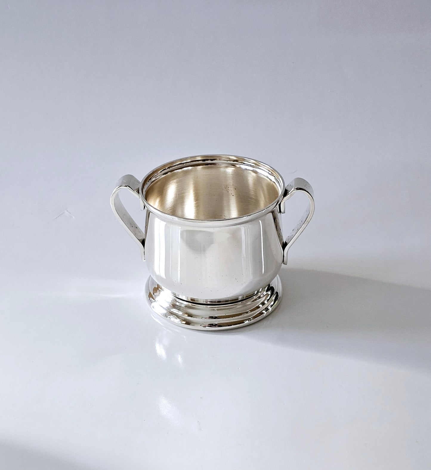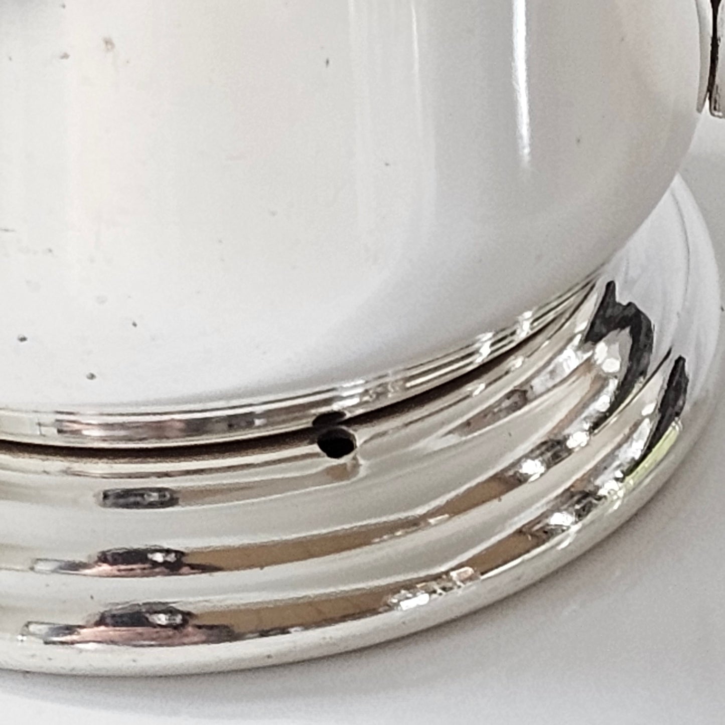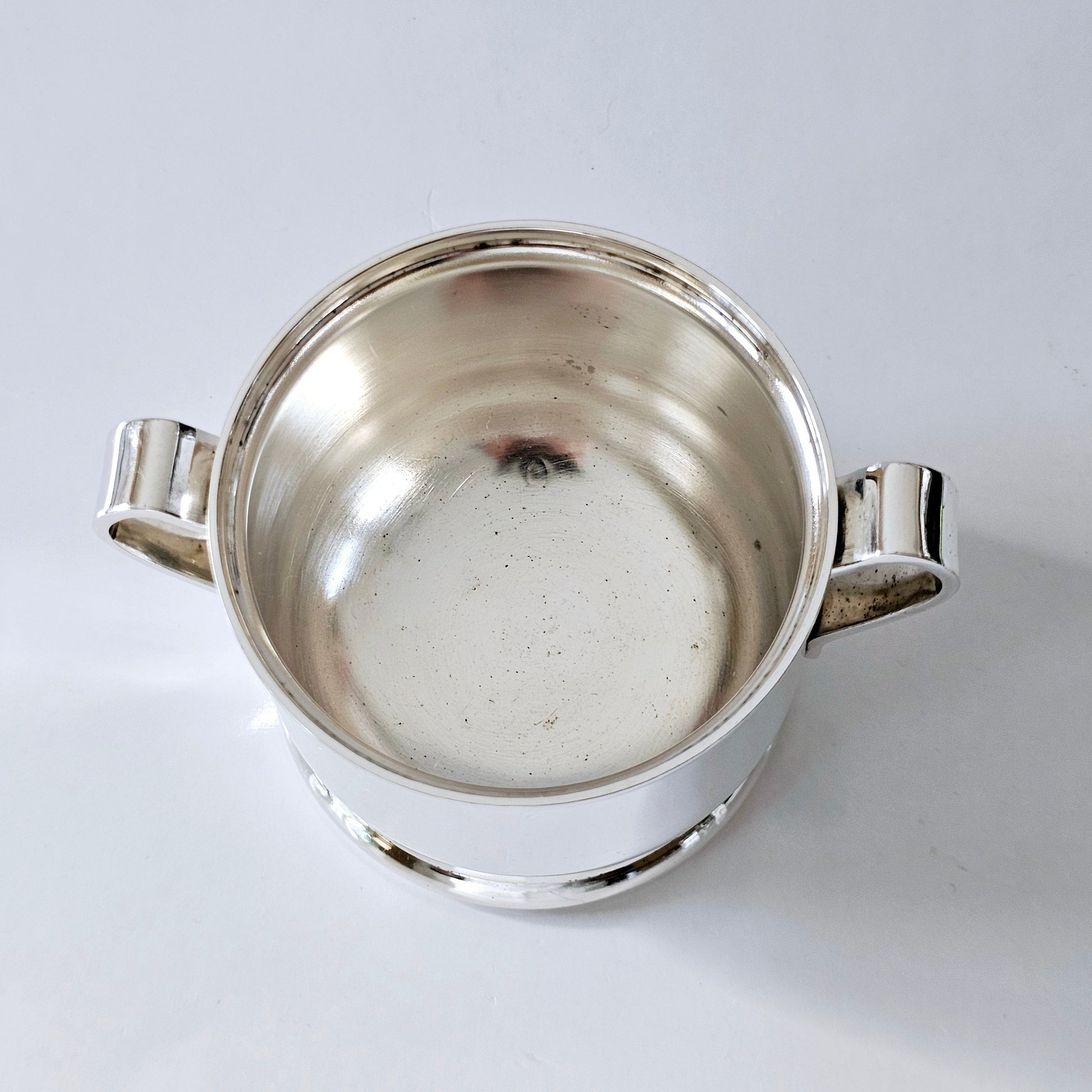 Condition: this piece has had a small hole drilled into the foot, which does not penetrate the bowl of the dish. It has been polished and stored in tarnish-resistant tissue paper. It is in good vintage condition.