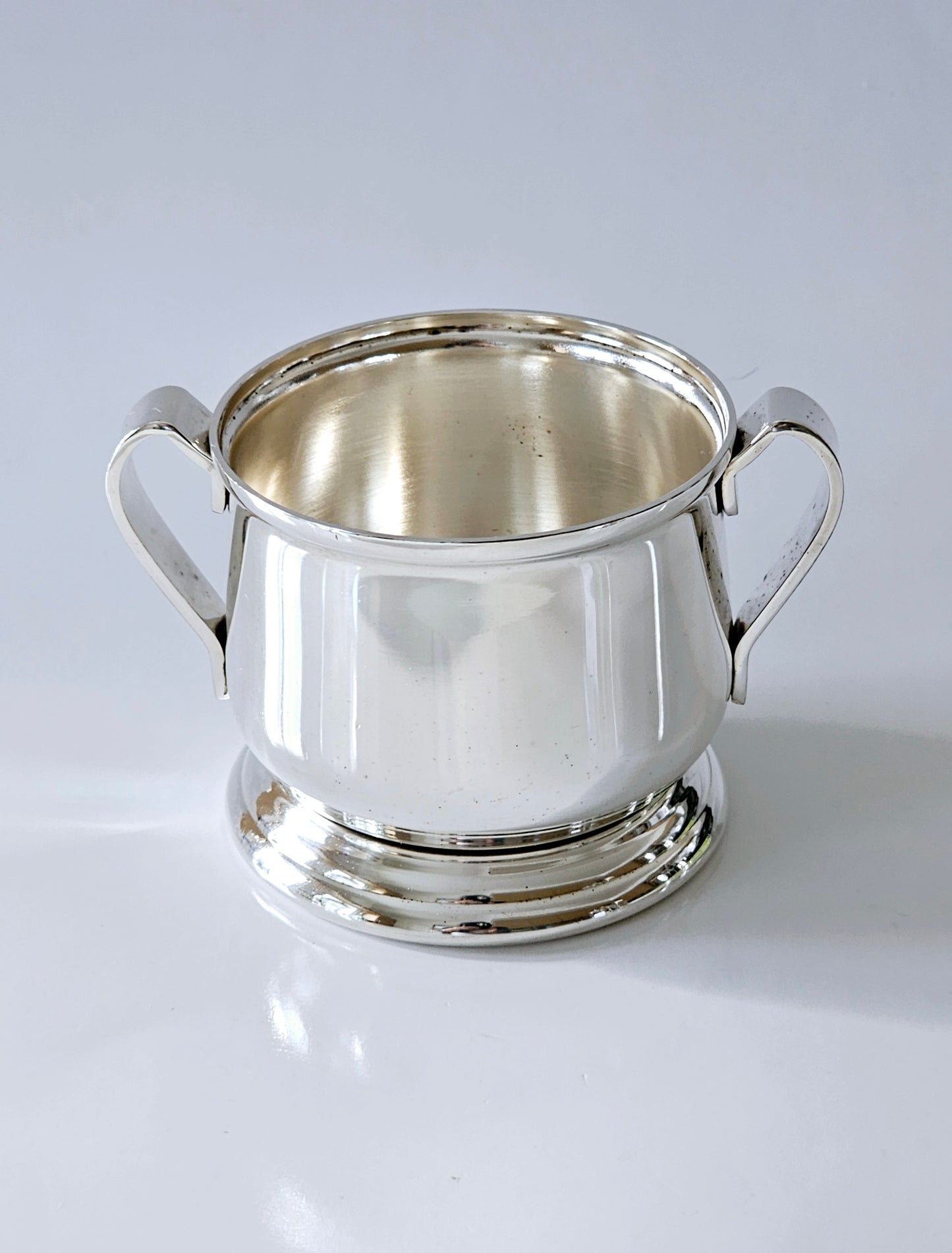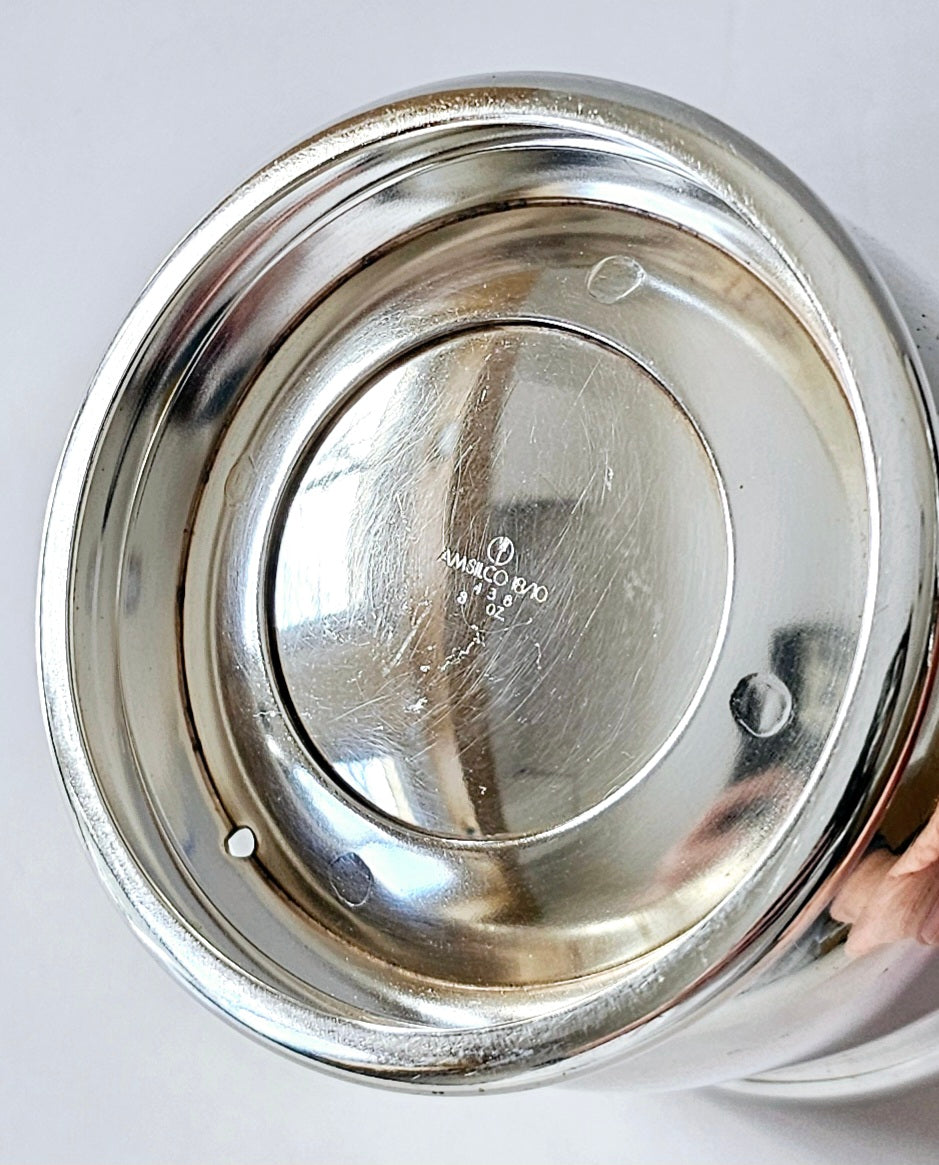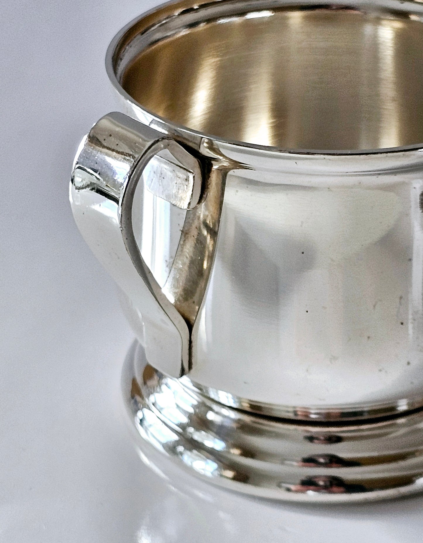 Condition: this piece has had a small hole drilled into the foot, which does not penetrate the bowl of the dish. It has been polished and stored in tarnish-resistant tissue paper. It is in good vintage condition.