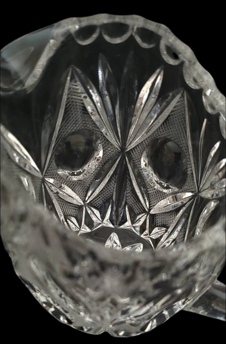 Vintage Cut Lead Crystal Creamer with Diamond and Button Pattern