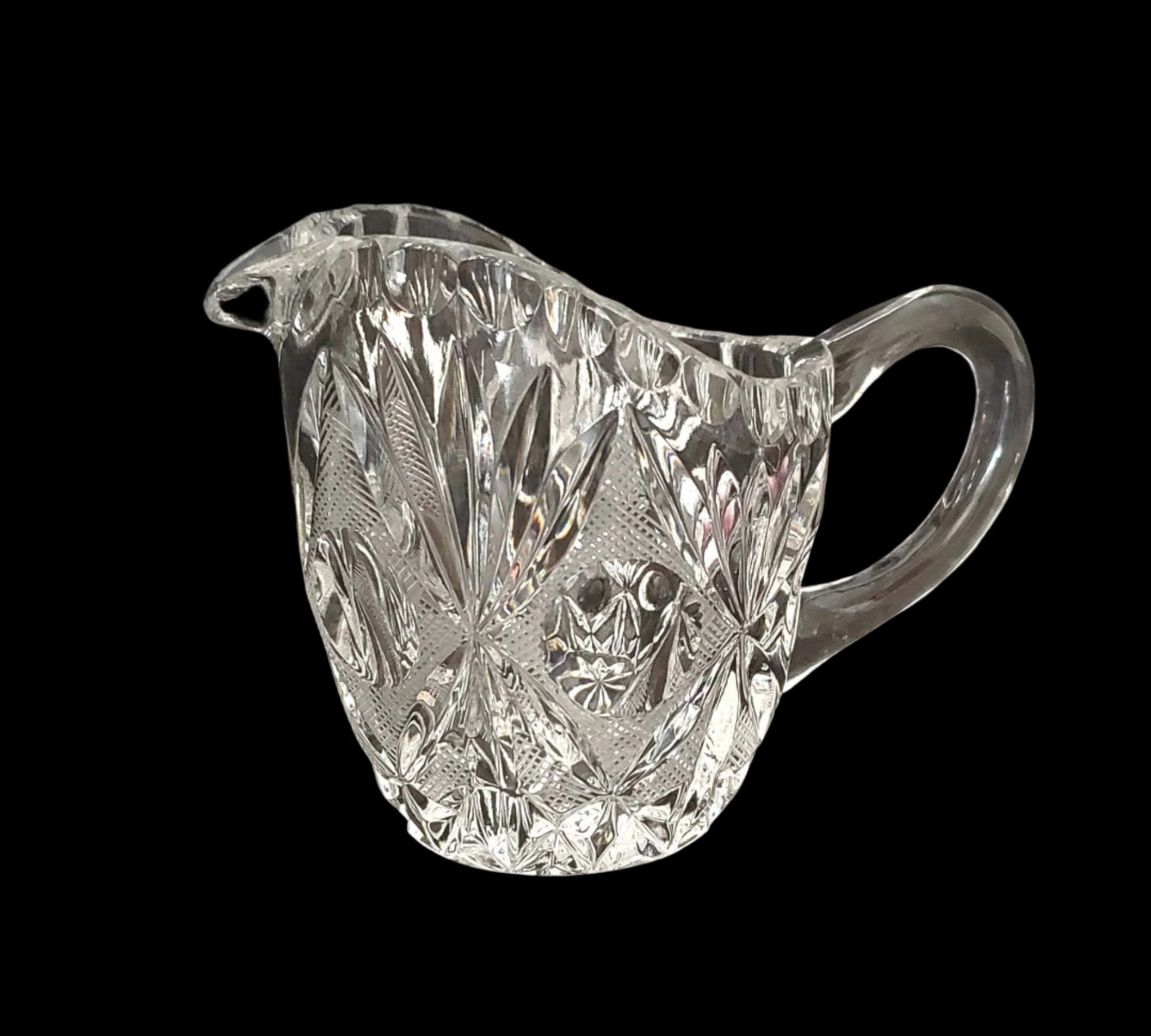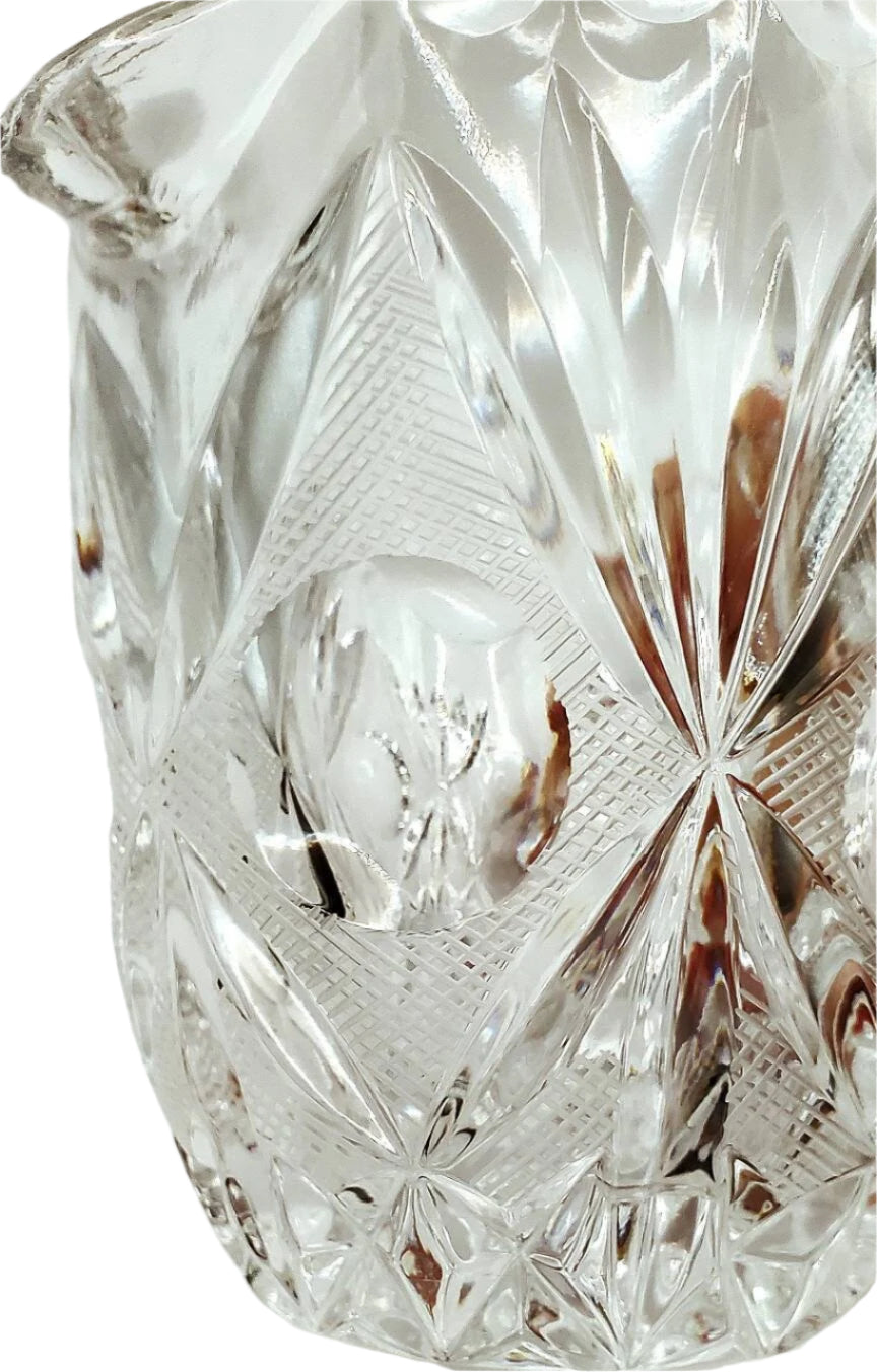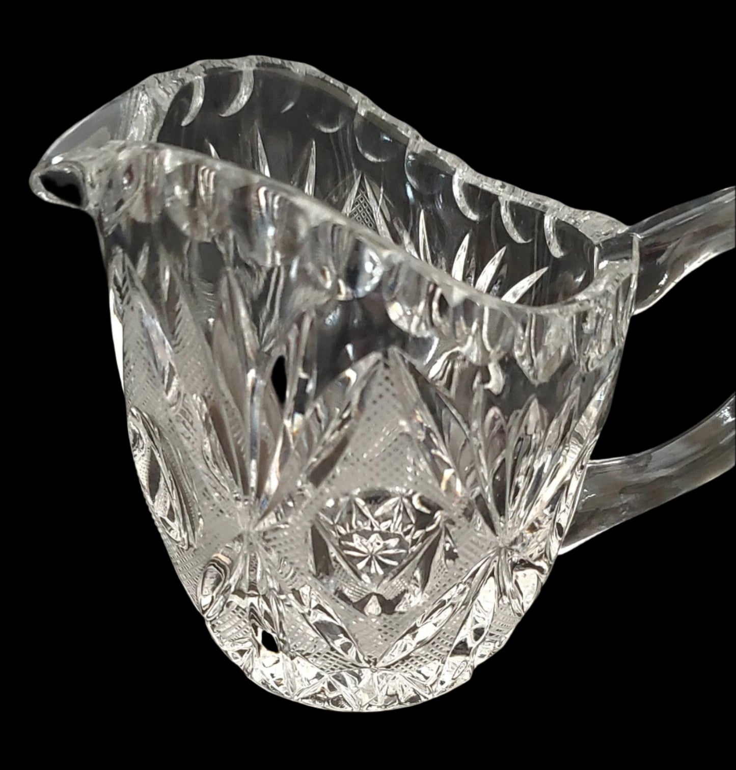 Cut crystal creamer with a beautiful diamond and button pattern. Use this for your morning coffee, use as a small vase, give as a gift, or add to your collection.