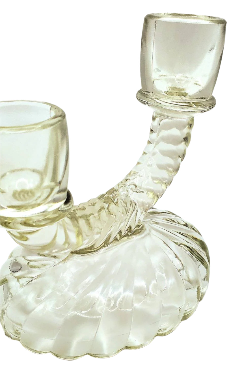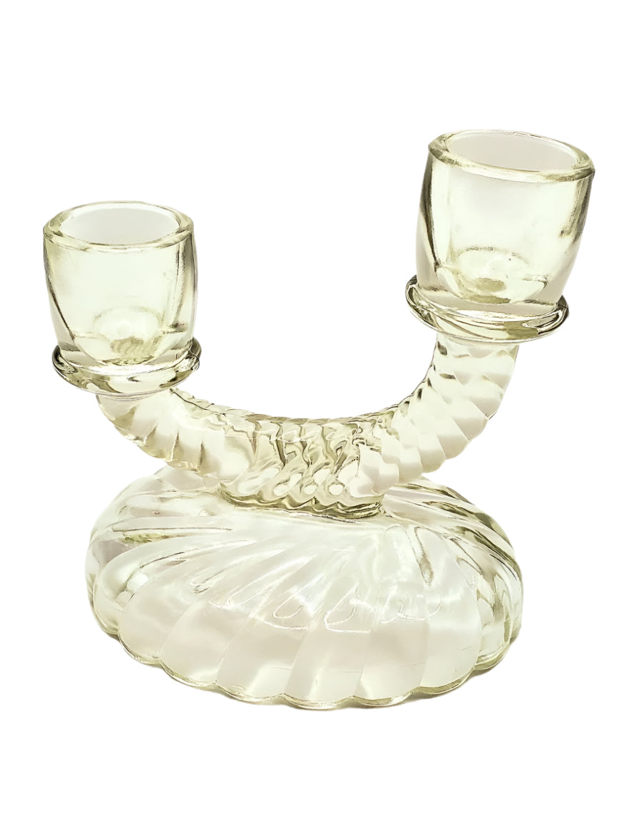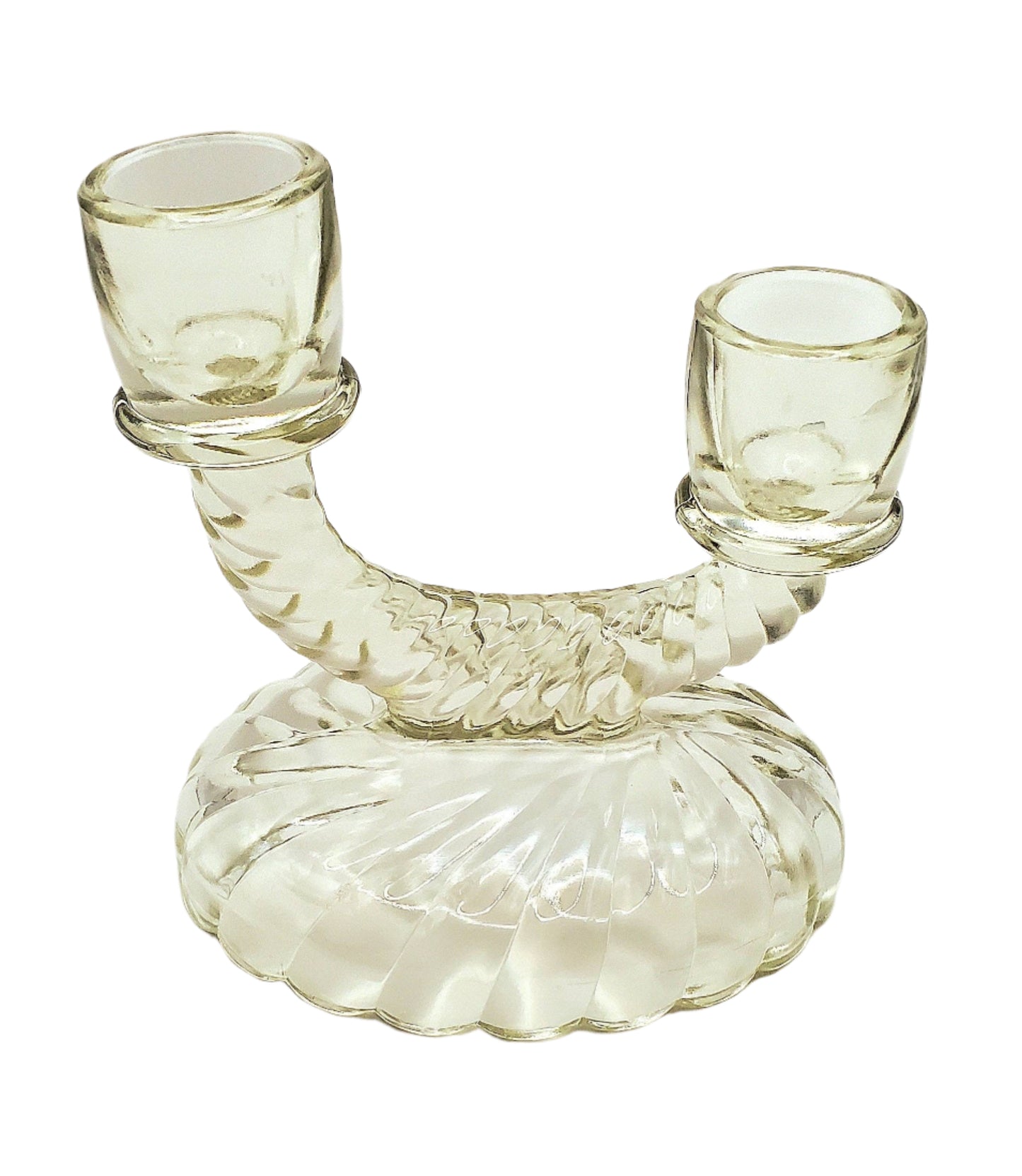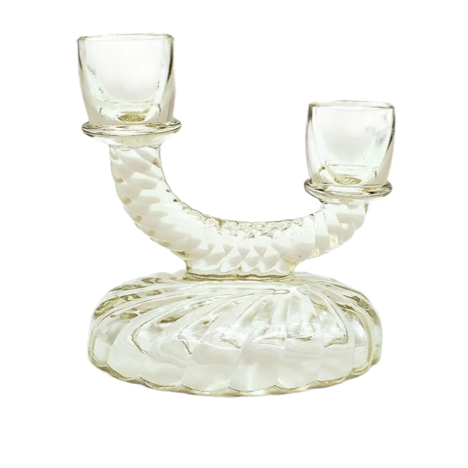 Vintage Two Light Candlestick Holder by Imperial Glass Ohio, Newbound Clear Pattern, Swirl Design
