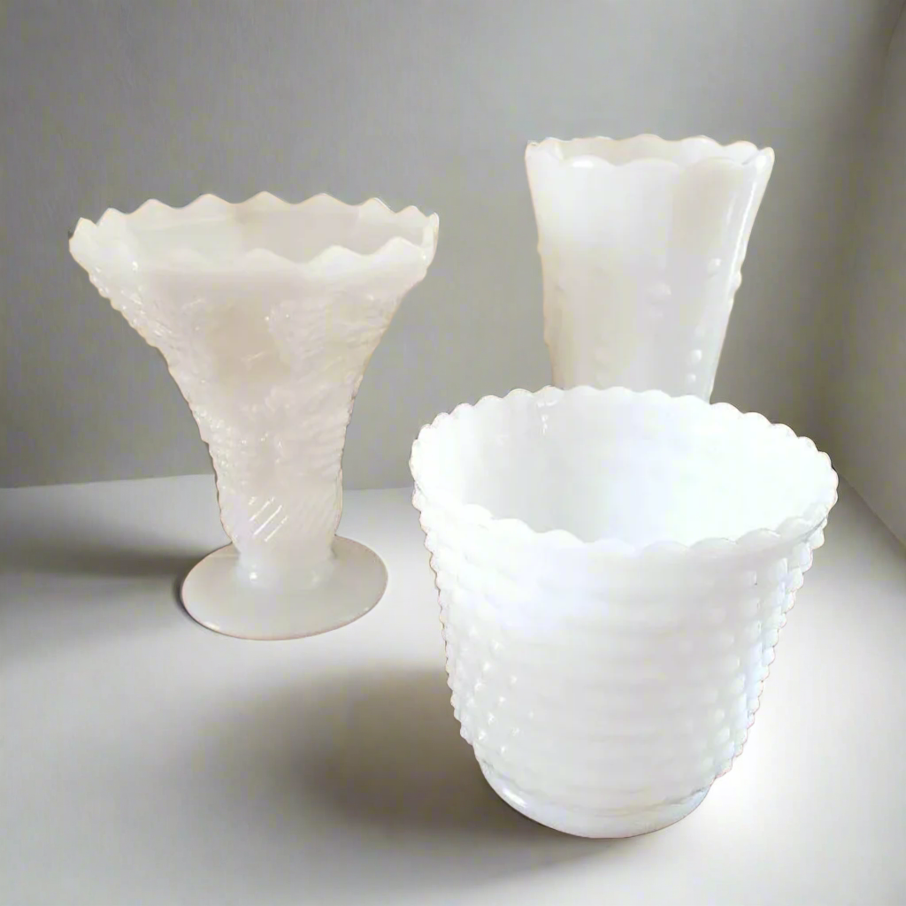 Vintage Milk Glass Planter or Vase, Hobnail Pattern