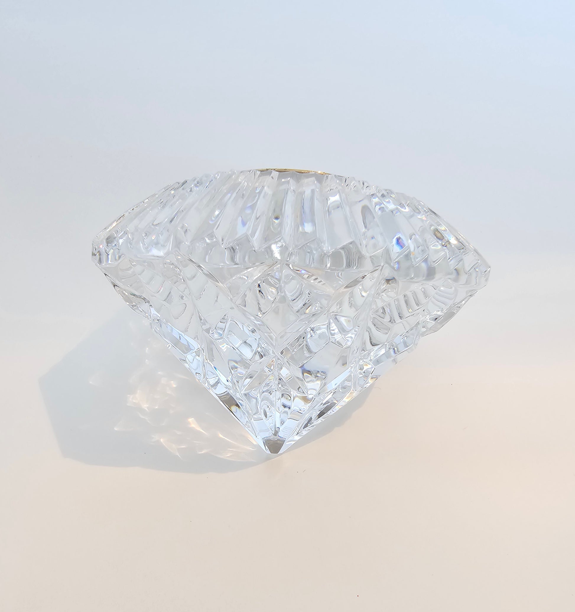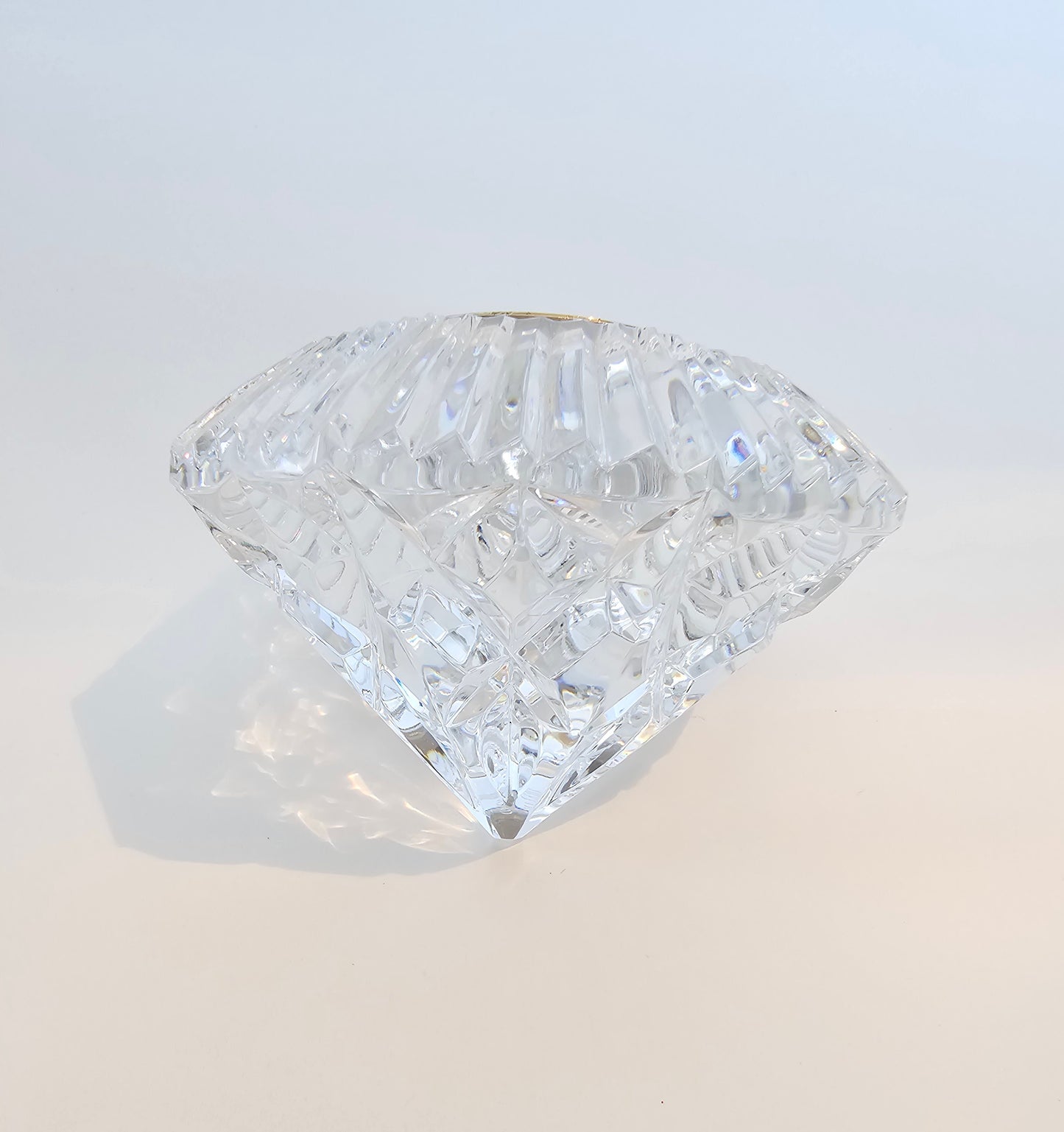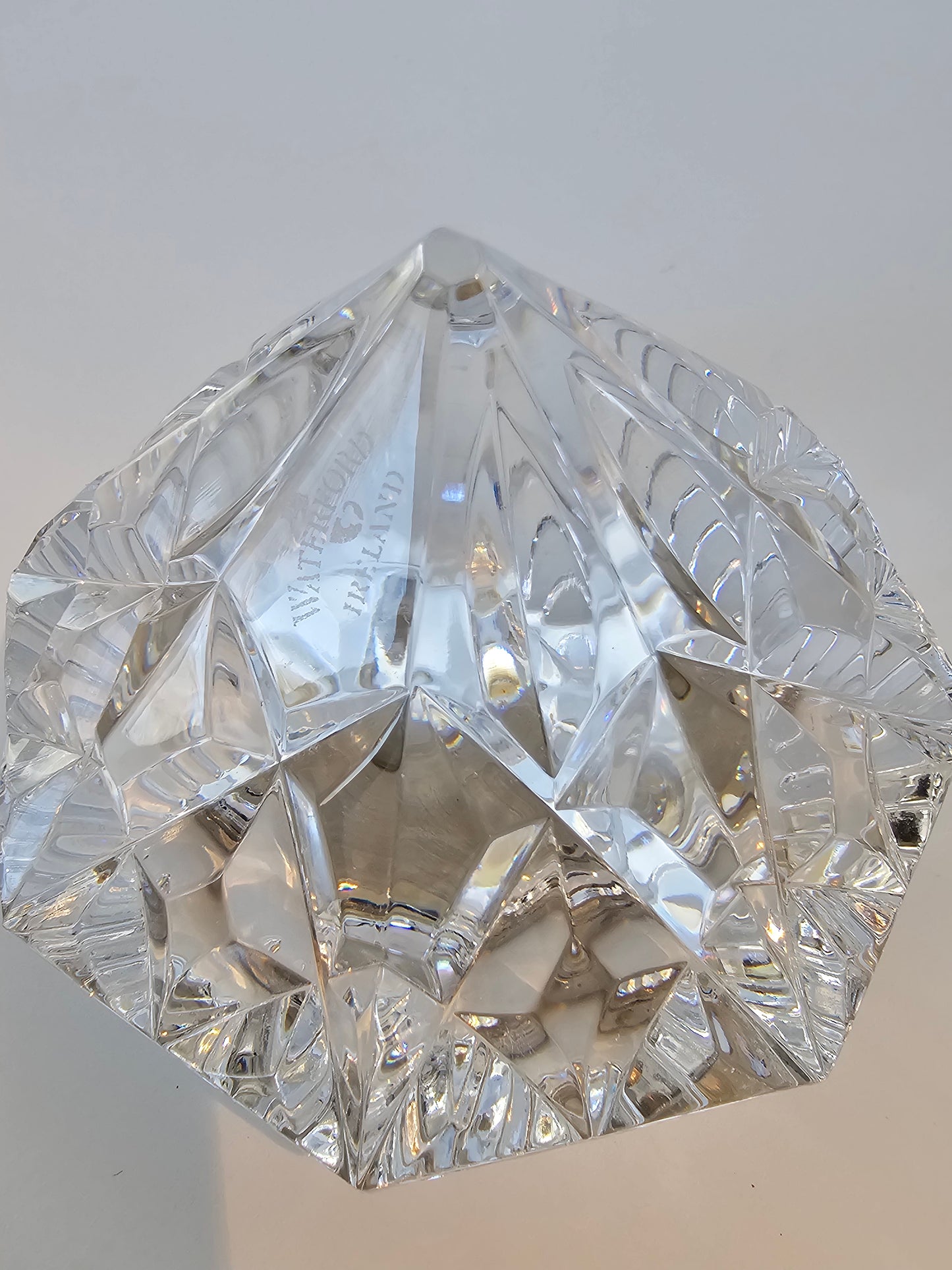 This stunning crystal clock by Waterford sparkles like a gem - and is a gem! Gem-shaped, that is. A six-sided front tapers to a faceted point on the back, and the front slopes gently back to make viewing the time easy. An analog face with a second hand, this clock has a white face and silver bezel. The clock fits snugly but pulls out with finger pressure to change the time and replace the button batter. Battery is not included due to postal regulations against shipping batteries.